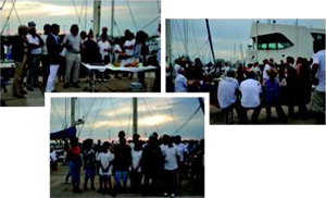 A notre retour, M. Le maire, Jean-Michel CHARBIT, Eric PALLIER (Directeur du port de la Grande Motte) et les membres des associations des plaisanciers du port de la Grande Motte, l'association Marine et Traditions, qui ont participé à offrir cette journée aux matelots étaient conviés sur le quai pour un pot de l'amitié.