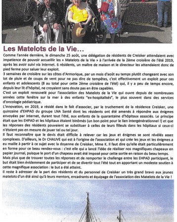 Source : Le lien Bleu de la Résidence CREISKER, #120, octobre 2019
