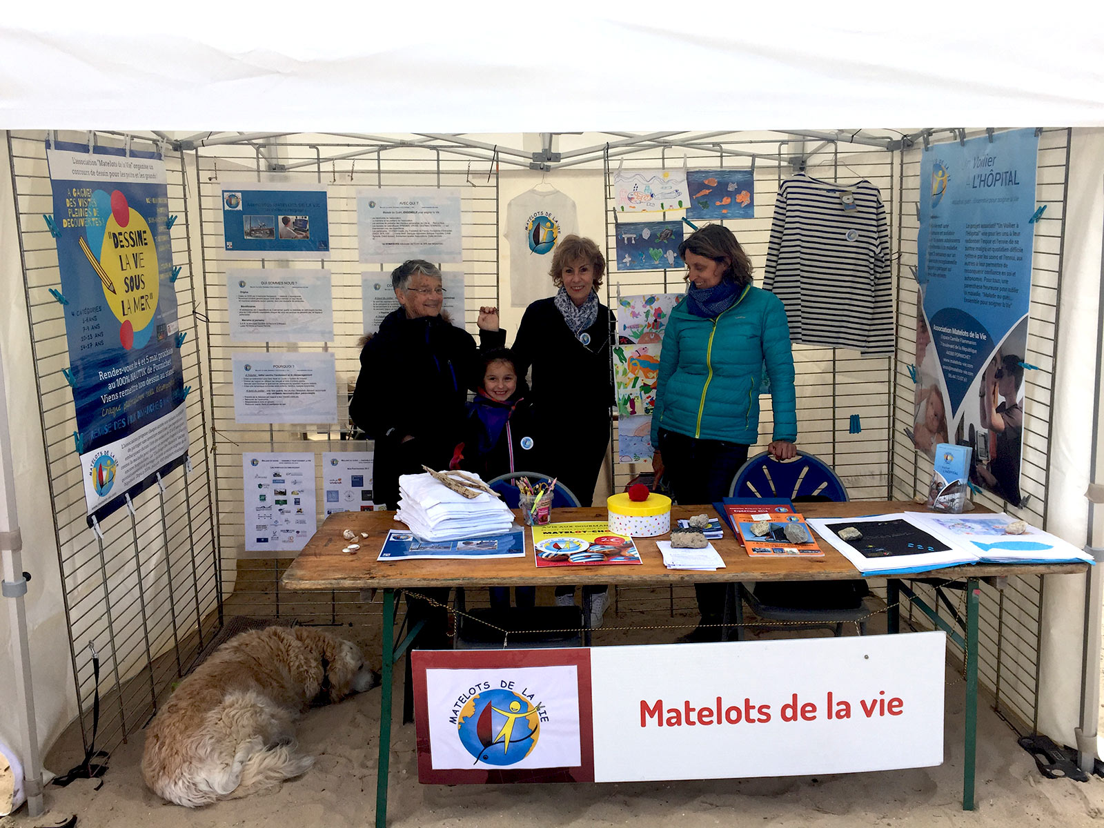 Implanté dans le nouvel aménagement du square Hervo et de l'Espace dunaire inauguré par la Ville le 4 mai en fin d'après-midi, le stand des Matelots de la Vie a été particulièrement fréquenté en ce week-end des 100%Nautik. De par l'intérêt porté à notre projet associatif "Un Voilier à l'Hôpital" mais sans doute aussi de par l'engouement suscité auprès de jeunes moussaillons par notre 1er concours de dessin "Dessine la vie sous la mer", pensé et organisé par Cindy LE CALVEZ, nouvelle bénévole enthousiaste. C'est ainsi plus de 75 dessins, toutes catégories confondues de 3 à 17 ans qui ont été remis à nos bénévoles et épinglés dans notre stand. Vêtues d'une marinière offerte par "Mousqueton" de Plescop, Aaliyah et Solène, Matelotes 2018, ont eu la gentillesse de nous rejoindre pour assurer le jury et la remise des prix de ce concours. Une trentaine de lots ont ainsi été remis, offerts par plusieurs partenaires : "Trésors de nos régions" et "1,2,3" Soleil" à Pornichet, "l'Océarium du Croisic", "Légendia Parc" à Frossay, "Terre d'Estuaire" à Cordemais, "ParcOfolies" à La Baule, "l'Office de Tourisme de Saint-Nazaire" et "Marine et Loire Croisières" de Nantes.