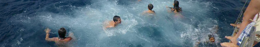 Mercredi 22 août 2012 : Apres avoir nettoyé le pont de la proue à la poupe, passer un grand coup d’éponge dans les fonds et dans la soute à voile, astiquer le carré, les cabines, le poste avant, la cambuse et la table à carte, les matelots s’offrent une dernière baignade bien mérité.