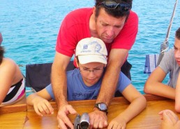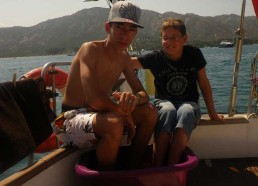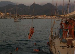 Dimanche 05 août 2012 : En ce dimanche, les matelots ont eu une mission ; celle de savoir ce que sont le canistrellis et la signification du drapeau corse. Pour cela ils doivent interroger des personnes de l’île en les filmant bien sur ! Par ailleurs, il fait chaud, on multiplie les baignades pour les matelots.