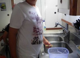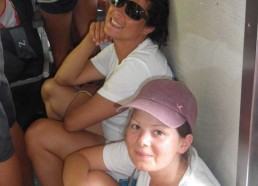 Lundi 13 août 2012 : Après avoir nettoyé leur bateau et rempli les frigos, les matelots changent de moyen de locomotion !! Ils embarquent dans le train qui longe la côte direction l’île Rousse. A eux de trouver pourquoi ce nom !