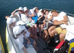 Et pas de répit, dans l’après-midi, initiation au Stand Up Paddle, avec Charly, du Paddle Center. Au début, nos matelots ont trouvé leur équilibre à genoux, puis les choses se corsent, il faut se lever… C’est l’occasion de voir de belles chutes et de joyeux fous rires !