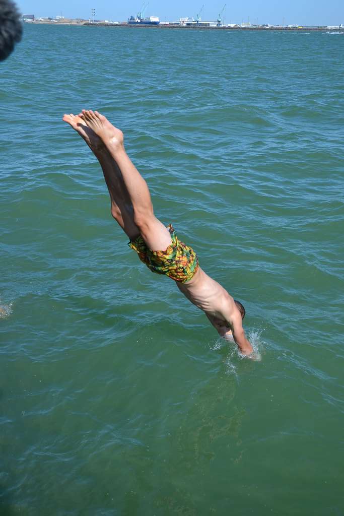 12 & 13 août 2013 : Départ des Sables d'Olonne, les matelots sont tous à la manœuvre, direction La Rochelle ! Dans l'après-midi, le temps nous permet de faire une petite baignade du pont…les matelots ont savouré ce moment qu'ils attendaient avec impatience ! En soirée, ils ont été invités chez Louisa et Antoine, à la Pizz de Laleu.