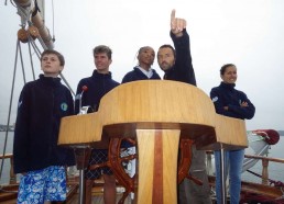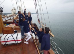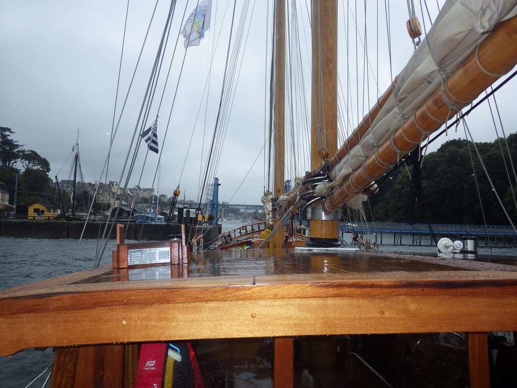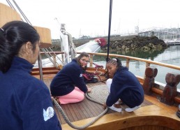 8 Août 2014 : Après une journée à Brest, les Matelots prennent la mer direction Douarnenez. Les Matelots découvrent les manœuvres et prennent la barre du Bora-Bora. Premier repas à Douarnenez offert par le Rotary Club, au menu salade de sardines et thon. Les matelots se régalent.