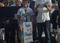 11 juillet 2014 : En préparation de la prochaine navigation, les matelots s’initient au pilotage de l’annexe. Première baignade sous le soleil malouin et la journée se termine par la visite de Blandine Jaouen du Grand Aquarium de St Malo et par le concert de la chorale de "Vents et Marées".