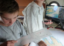 Dimanche 7 août 2016 : Aujourd’hui les Matelots quittent Lanidult dans la matinée, direction l’île de Ouessant. C’est une journée de navigation, au milieu des nuages, où chacun s’occupe à sa façon. Nous arrivons en fin d’après-midi au mouillage en baie de Lampaul à Ouessant.