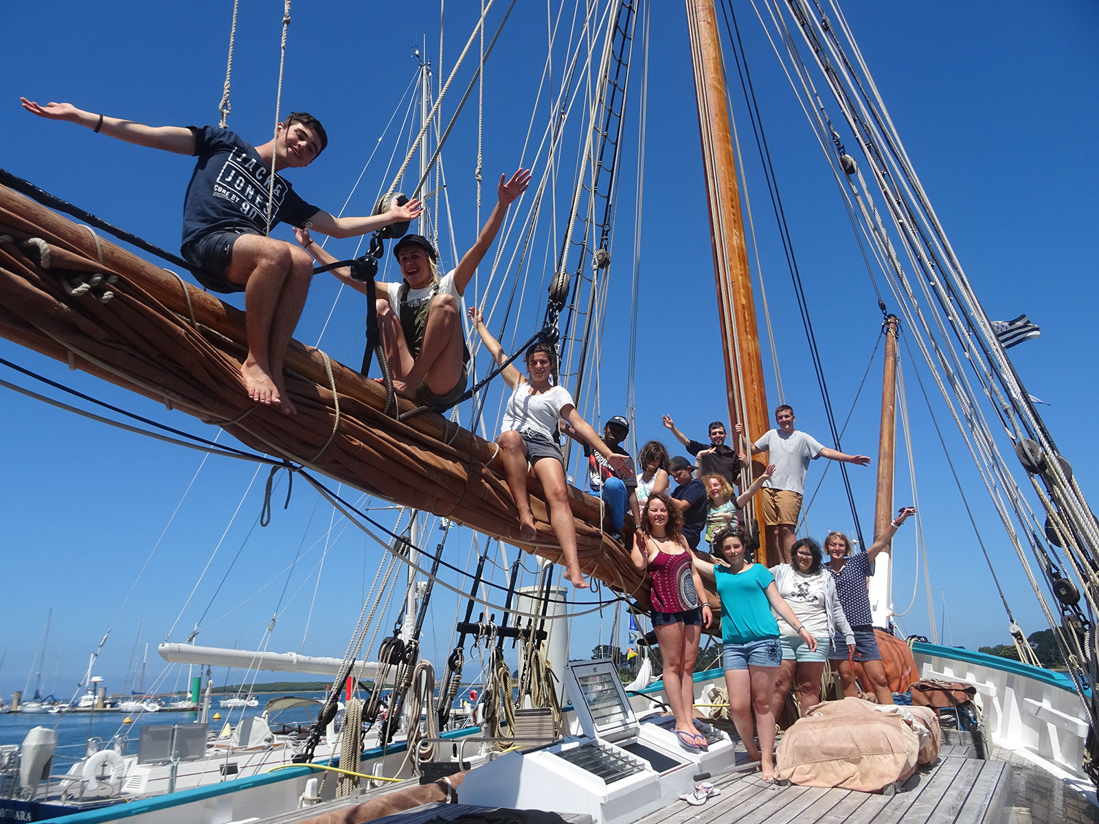 Dimanche 22 juillet 2018 : Encore une nouvelle navigation pour nos matelots nous menant de l’Aber Wrac’h à l’île de Ouessant. Clément, un encadrant de l’expédition d’août était venu depuis la veille avec Emilie sur le bateau. Ils ont pu assister à notre départ. Greg, notre capitaine nous a expliqué l’historique de la « Fleur de Lampaul ». Un discours très passionnant et d’autant plus parlant car nous étions sur les flots.