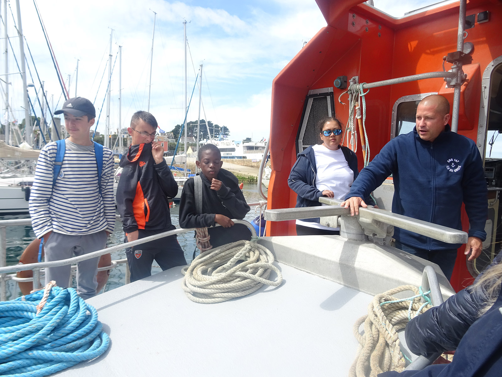 Après le repas, Frédéric Romieux, patron de la Vedette SNSM de Groix et son équipage nous ont amenés en mer. On a pu découvrir le phare de Pen Men depuis la mer.