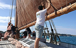 Dimanche 18 août 2019 : Après un repos au mouillage dans le Golfe du Morbihan entre l’île d’Arz et Ilure, on débarque en début de journée sur l’île d’Ilure. Deux gardes du Parc Naturel Régional du Golfe du Morbihan nous y accueil. En début de journée, visite guidée par Vincent Chapuis puis atelier cuisine, préparation de la pâte à pizza, allumage du feu dans le four à bois, construction d’un four solaire, rangement du bois, découverte et pratique de jeux anciens en bois. Gwénégan Cueff nous fait observer du haut de la montagne d’Ilure des oiseaux.