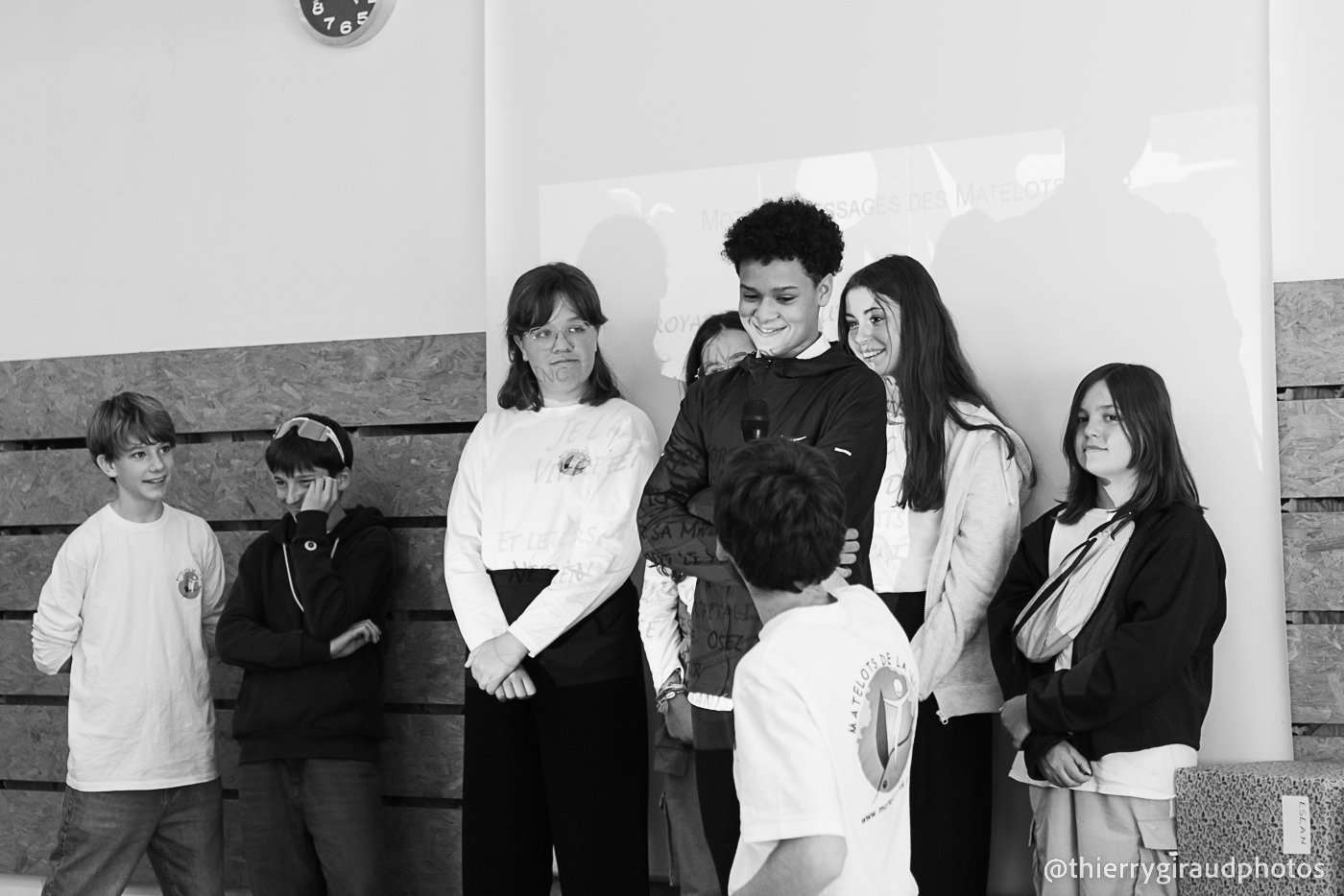 À l’exception de deux d’entre eux, tous les Matelots étaient présents accompagnées de leurs parents, voire de leurs sœurs et frères. A leurs côtés, étaient présents leurs encadrants Camille, Maëline, Nancy (excepté Marie repartie en mission humanitaire au Bénin), le vidéaste Alexandre et Grégoire, capitaine de Fleur de Lampaul, accompagné de Julien.