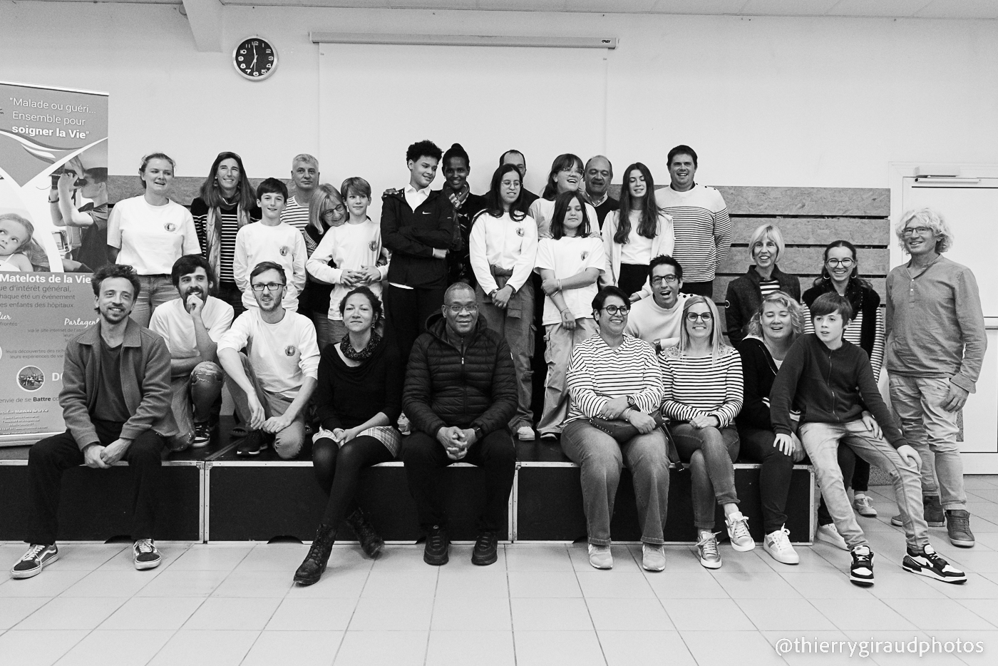 Parmi les invités, on notait la présence de Mme Nicole DESSAUVAGES, adjointe à l’action sociale représentant Monsieur le Maire de Pornichet, témoignant une nouvelle fois de l’attachement de la ville à Matelots de la Vie. Etaient également présents Michel JAMMES, président du CNBPP qui a accueilli en mai le stage préparatoire au Pouliguen et Thierry FARDEAU, vice-président de la MASFIP qui apporte au projet un soutien fidèle depuis 2021. L’un et l’autre ont pris la parole pour dire le sens de leur démarche à nos côtés. À noter également la présence de Louis MAILLARD, président du groupe musical "Les Fous de Bassan" du Pouliguen accompagné de trois chanteurs et musiciens, qui a annoncé l’organisation le 9 mars 2025 au Pouliguen d’un concert au profit de l’association. Isabelle VAILLANT, présidente de l’association "Docteur Hibou" qui depuis 2023 fabrique un sac pour chaque Matelot, a annoncé que celui de 2025 sera offert par la Sté Sailbags et réalisé dans des voiles de bateau.